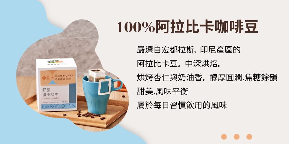 100% 阿拉比卡咖啡豆 + 專利GABAbiotics 好情緒適應原